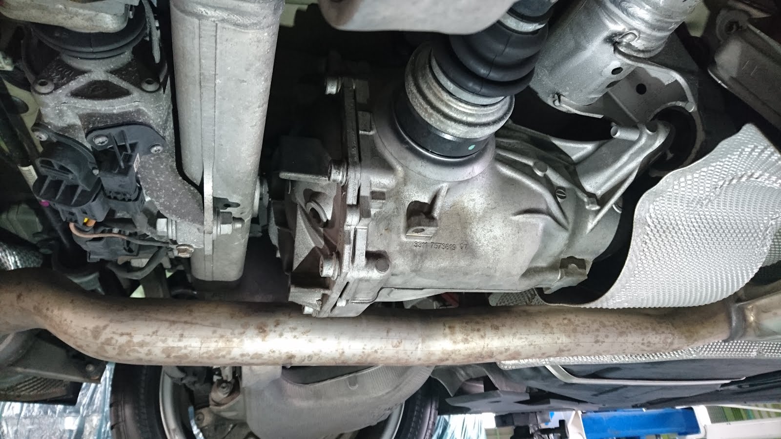 写真では分かりづらいが、リヤデフからオイル漏れ(オイル滲み)があることが発覚。